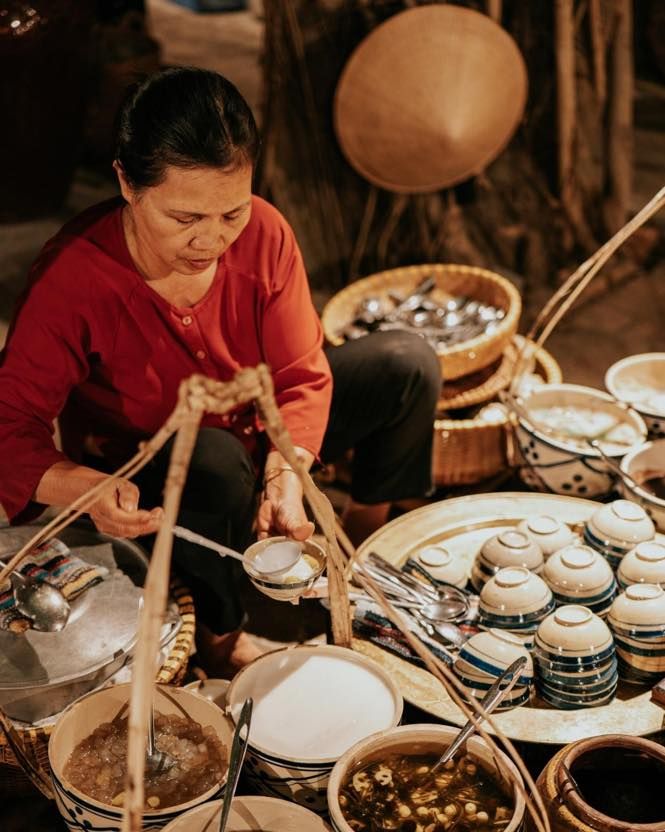 Наше гастрономическое путешествие начнётся с дегустации "Nem Nuong Ninh Hoa" (жареные ферментированные свиные рулетики из Нинь Хоа) в одном из популярных местных ресторанов. Здесь вы сможете попробовать традиционное блюдо в окружении местных жителей — как настоящий нячангец. Затем мы отправимся к известной уличной точке, чтобы попробовать "Banh Xeo Muc" — необычный блинчик по-нячангски с кальмарами вместо привычной свинины и креветок, как в других городах.